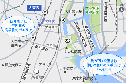 駅西側は落ち着いた高級住宅街、東側はマンション街と、エリアごとで異なる表情を持つ大森には、海が近く公園も多いのが特徴。